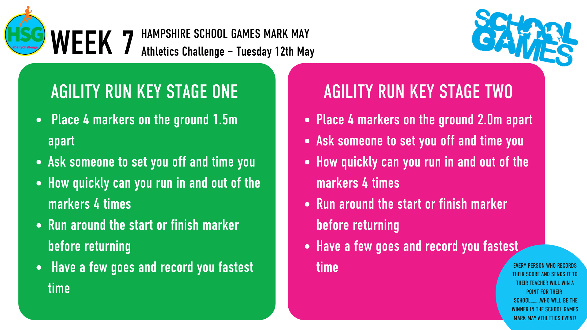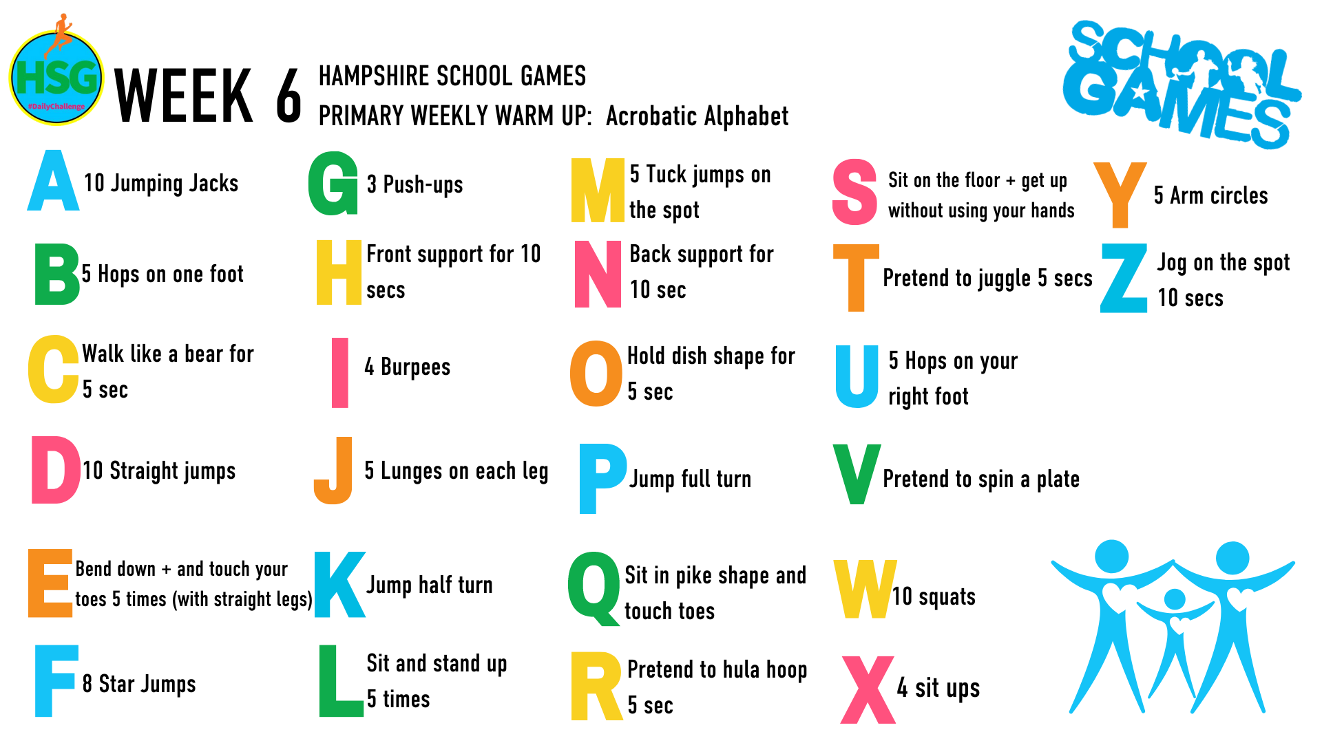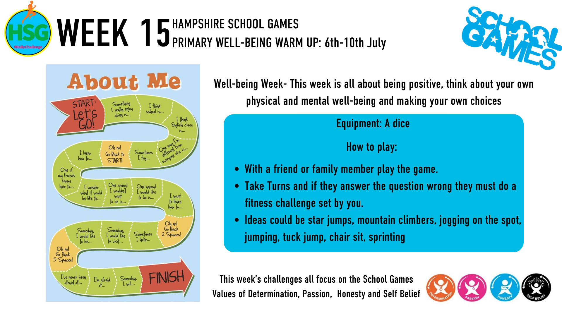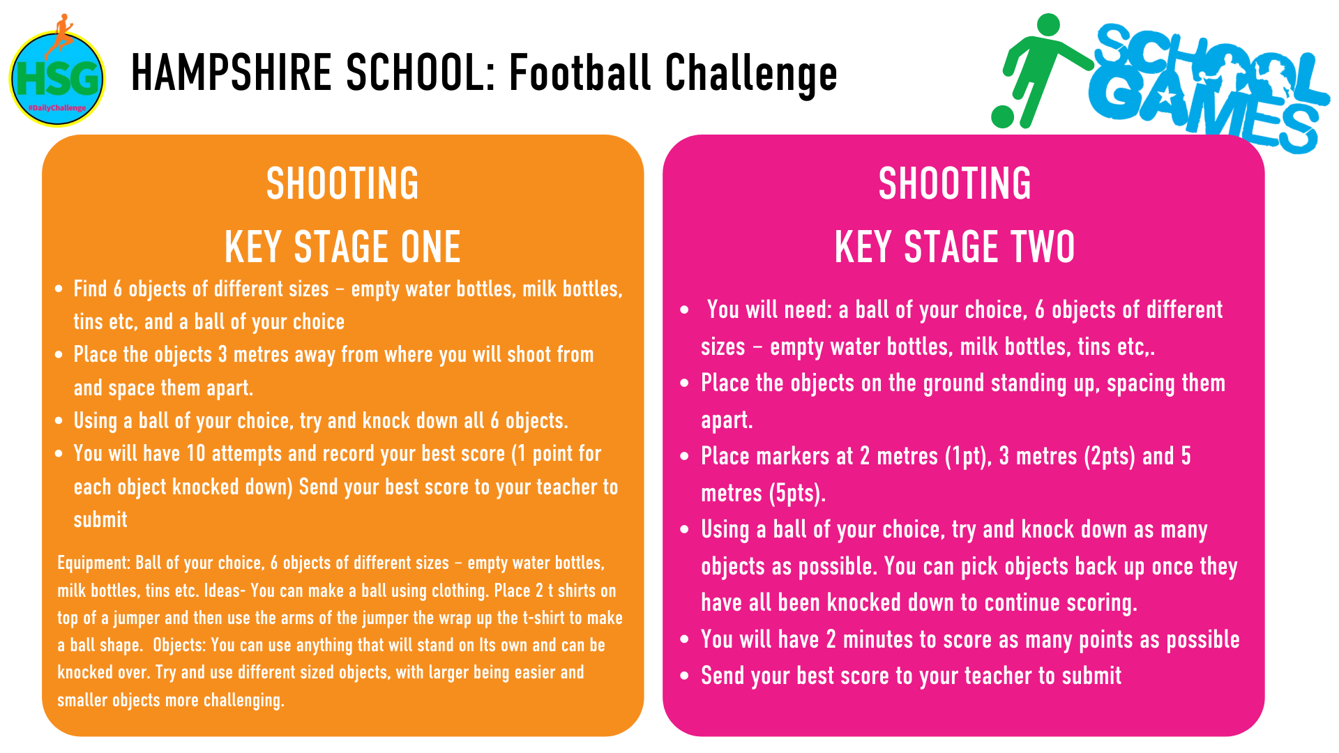 Below are links to the weekly challenges as set out by Hampshire School Games
