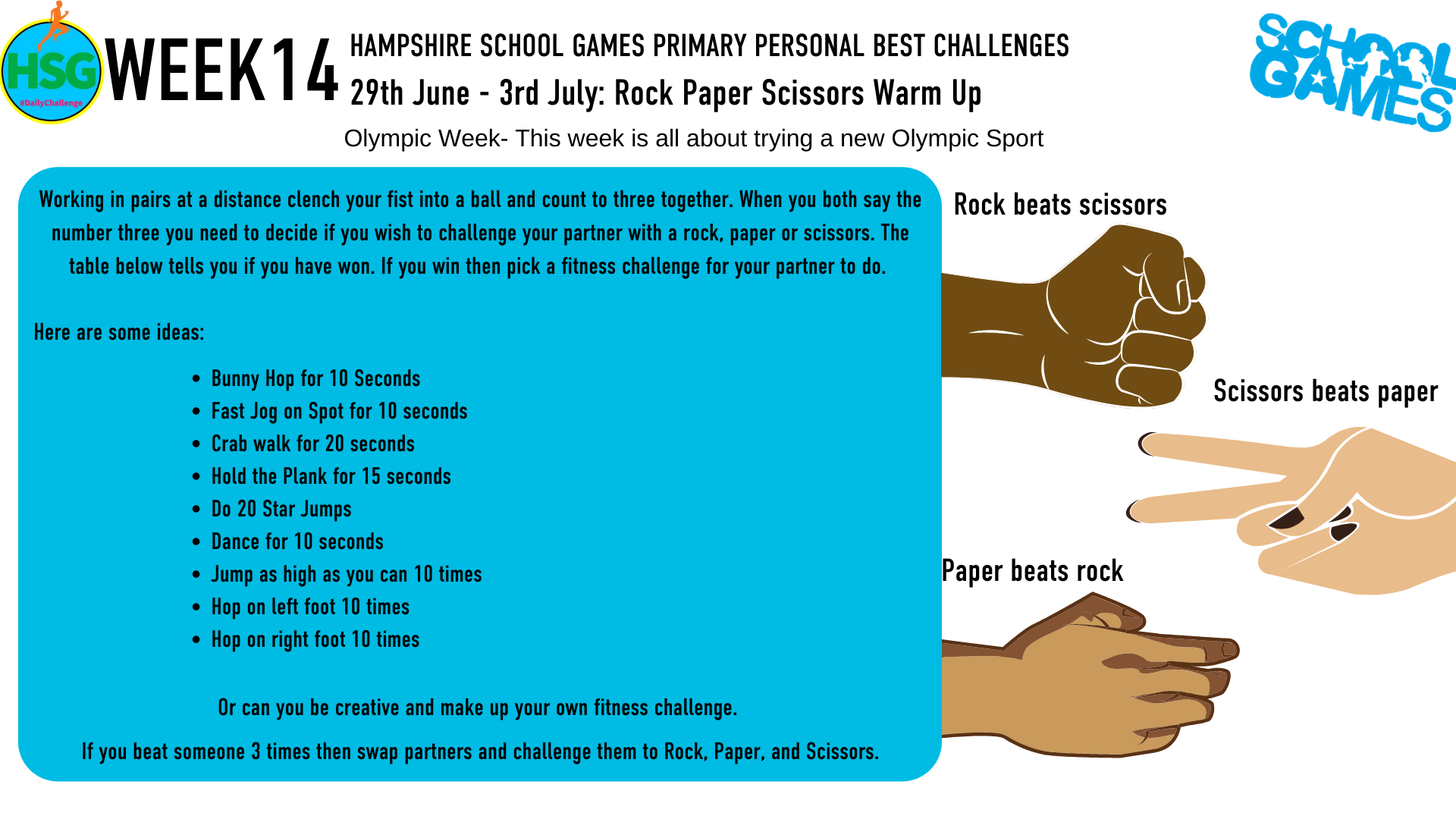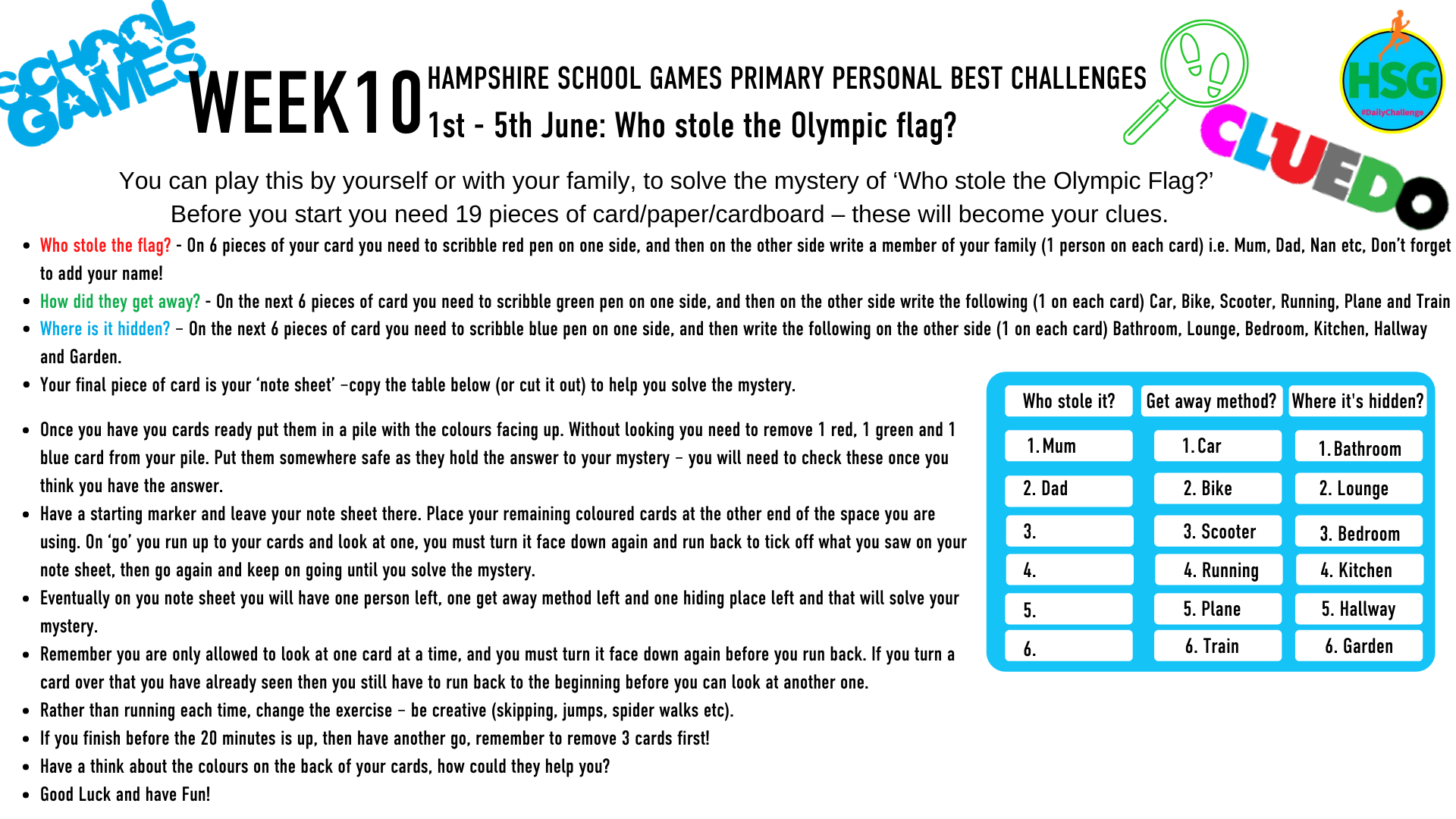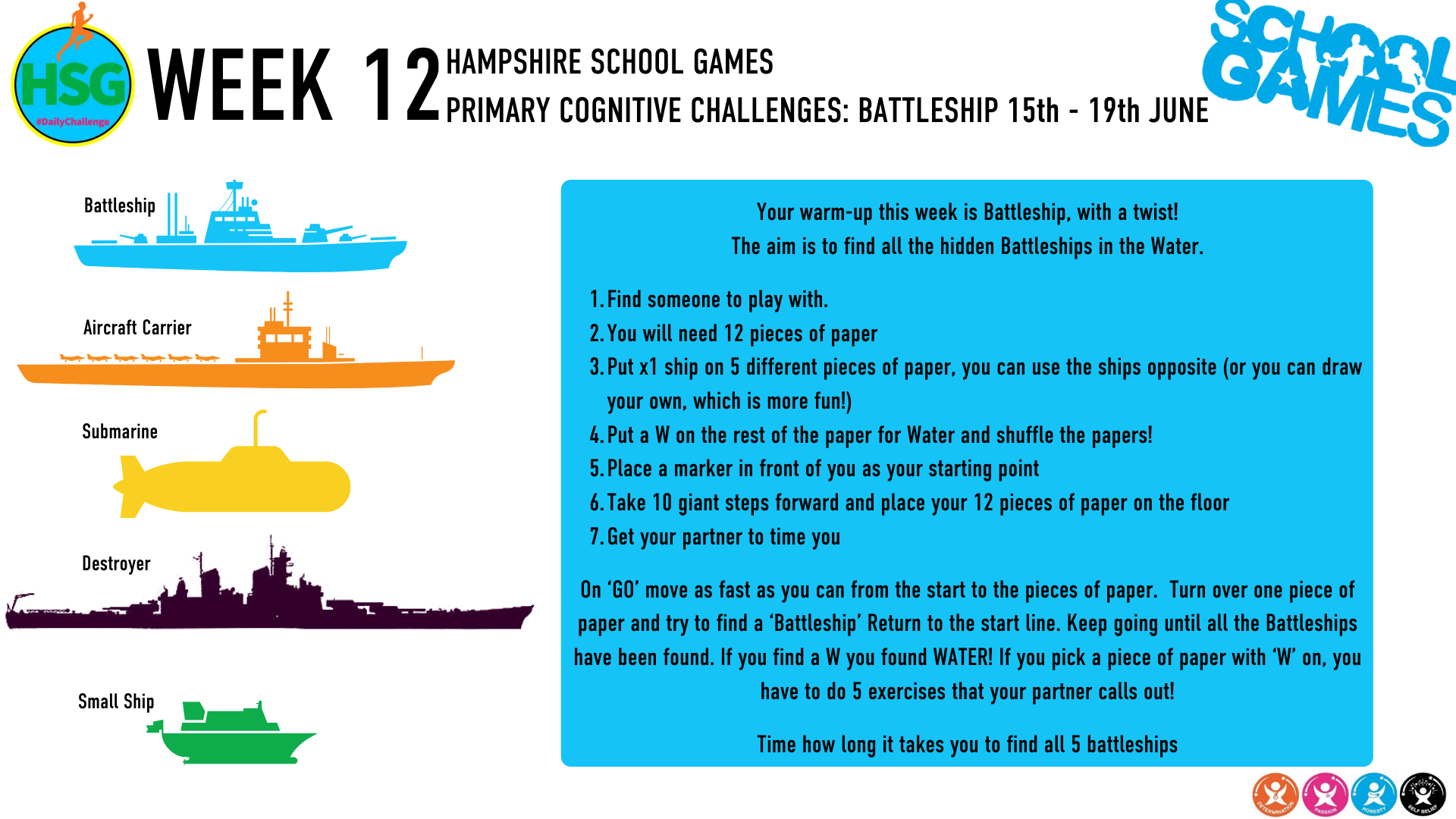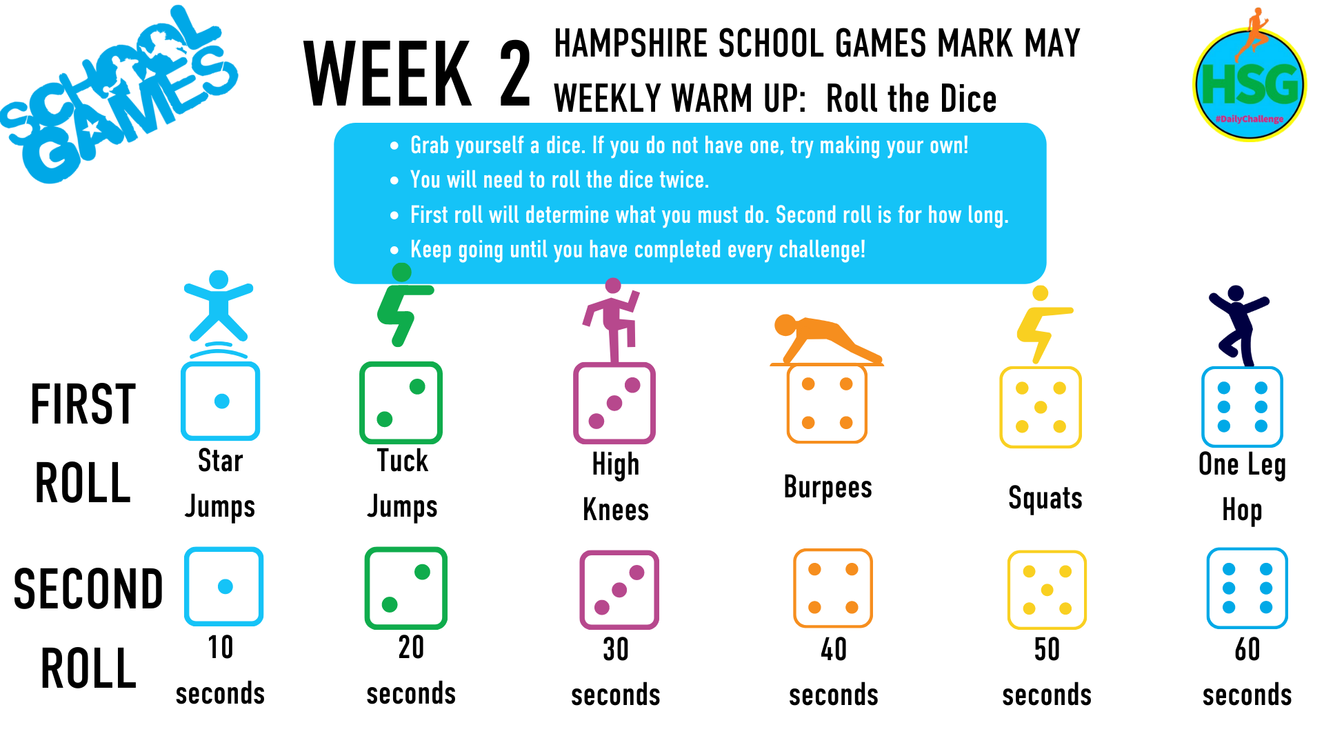 Below are links to the weekly challenges as set out by Hampshire School Games