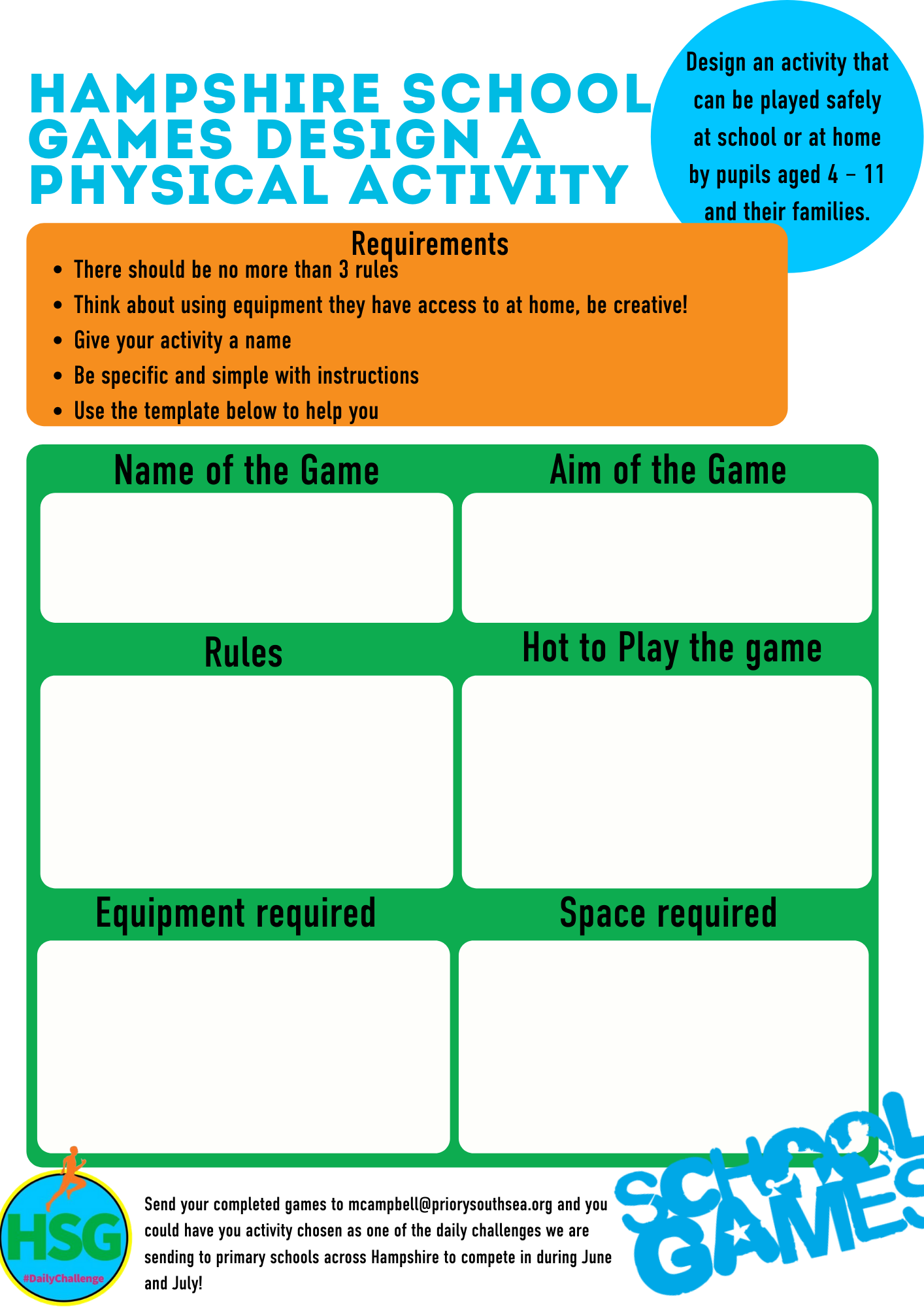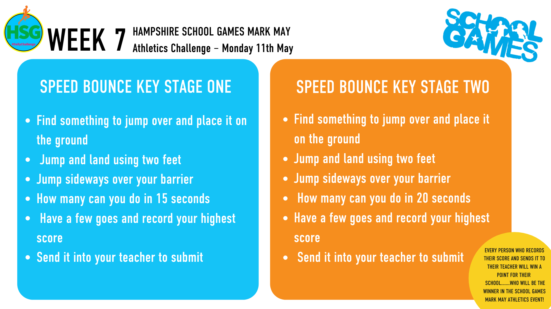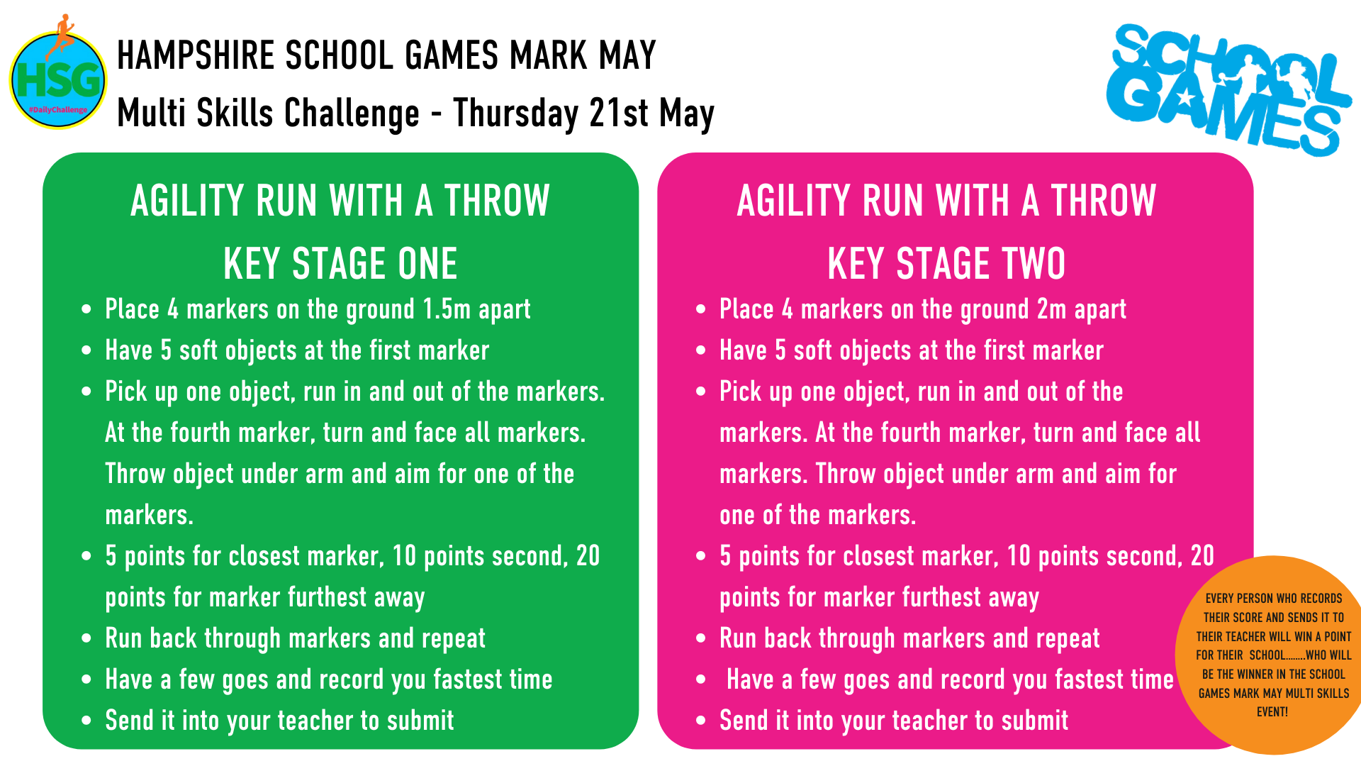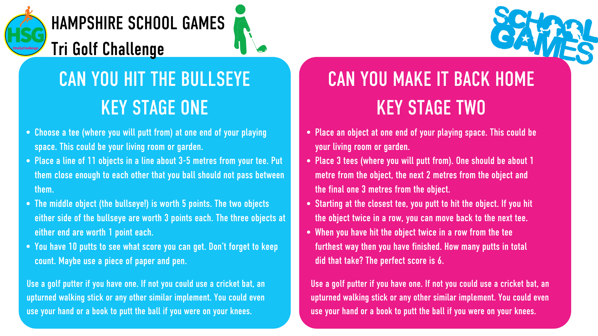 Below are links to the weekly challenges as set out by Hampshire School Games