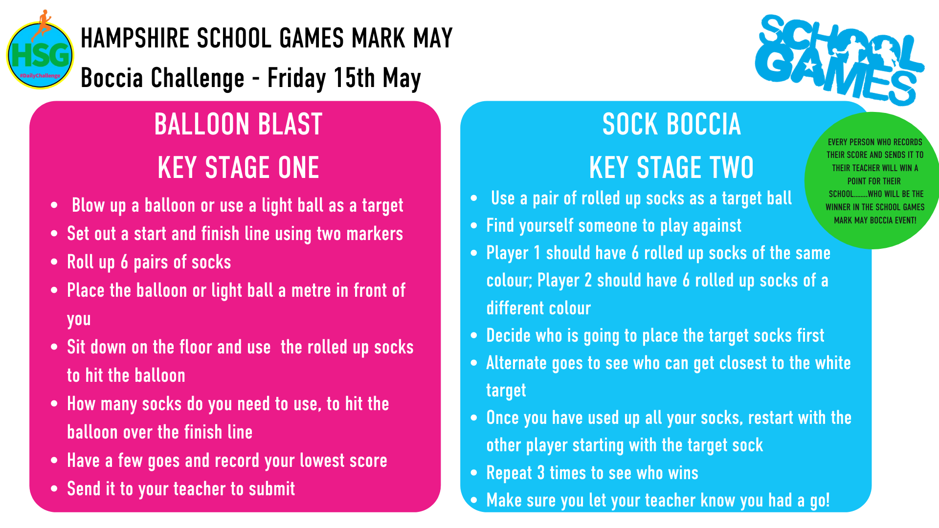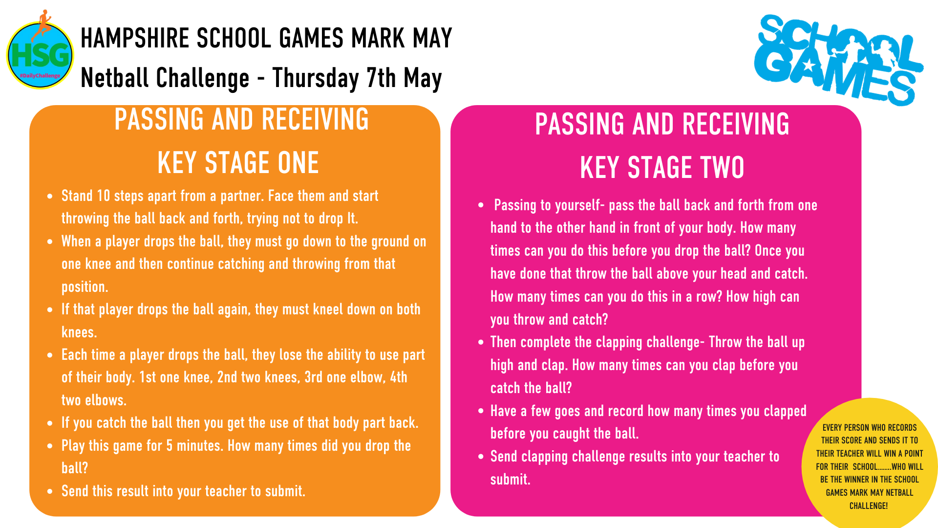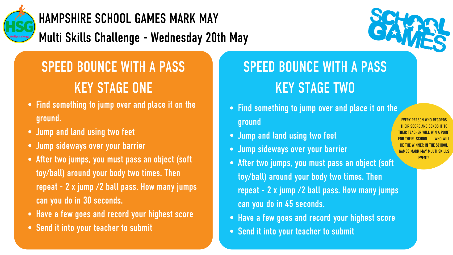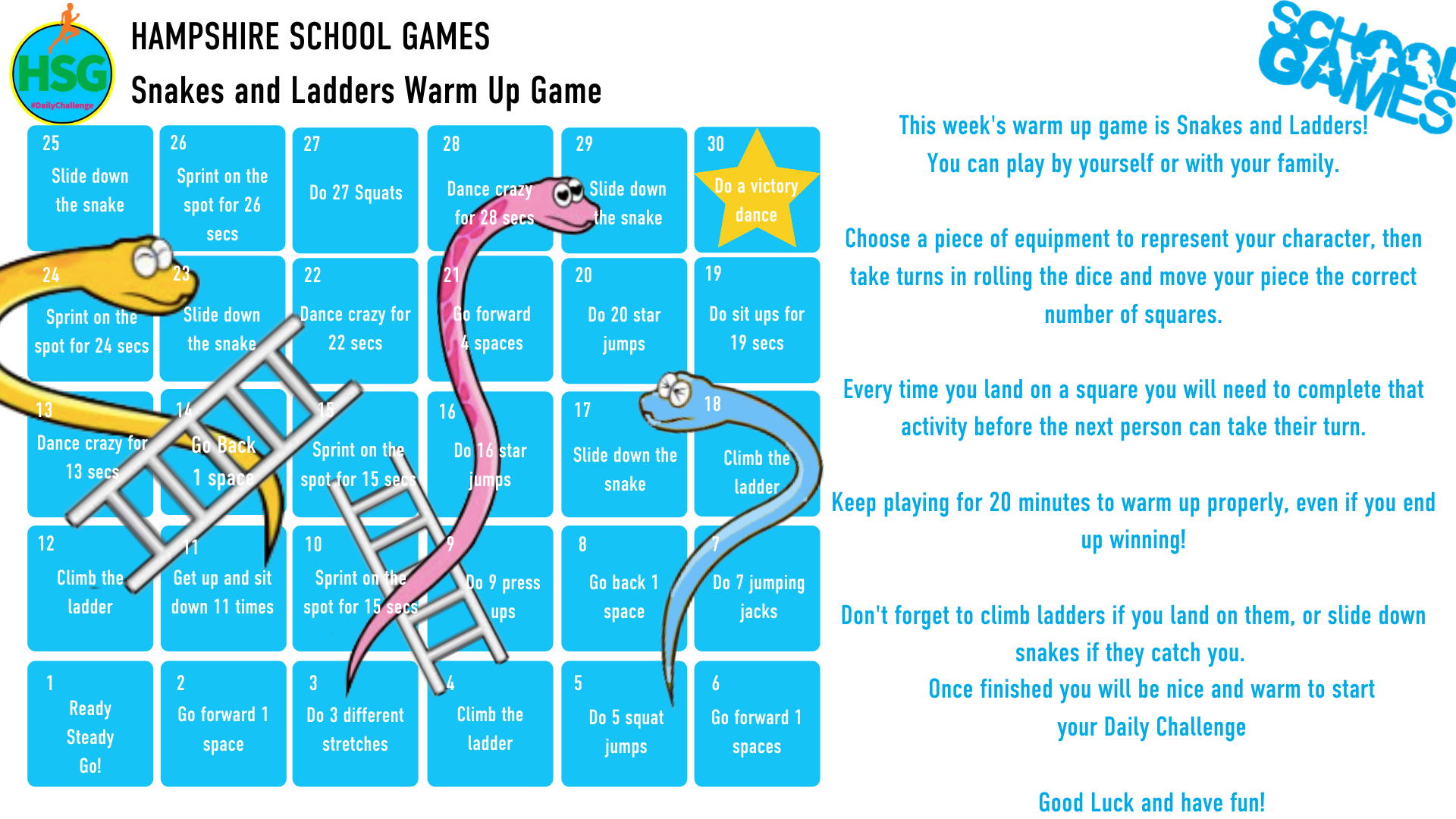 Below are links to the weekly challenges as set out by Hampshire School Games