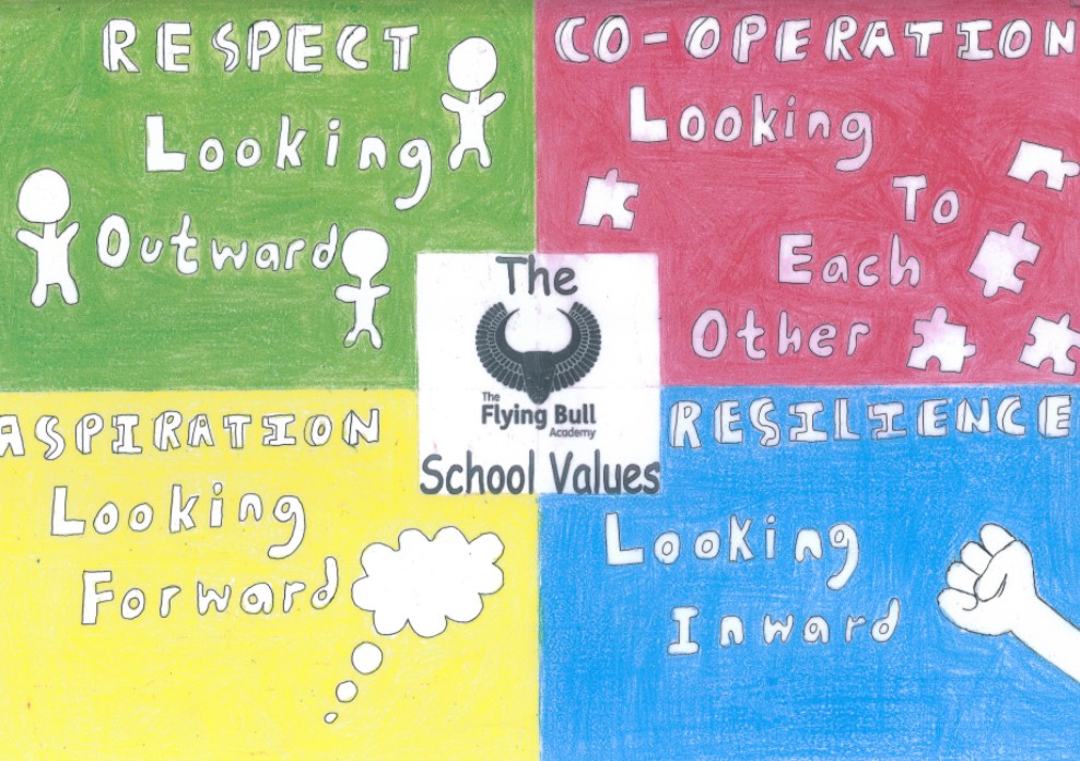 At The Flying Bull Academy, our four school values—Respect, Co-operation, Aspiration and Resilience —are at the heart of everything we do. They shape the way we learn, interact, and grow together as a school community. From the classroom to the playground, we encourage our children to dream big, work hard, and support one another every step of the way. Our curriculum is built around these values, helping every child develop the skills and mindset they need to succeed, both now and in the future!